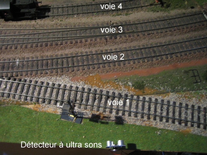 Je l'utilise sur mon réseau pour controler le passage de trains sur 4 voies comme représenté sur la figure ci-dessous.