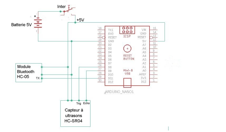 Le cablage entre le capteur à ultrasons HC-SR04 et l'ARDUINO UNO est le suivant: