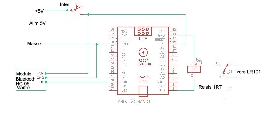 Les sorties des 4 relais sont connectées à 4 broches du LR101 et à la masse.