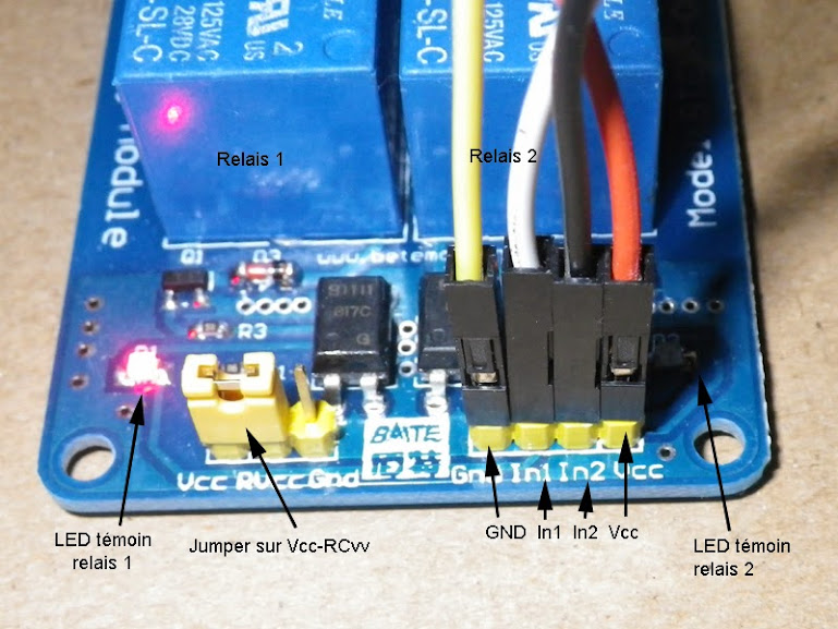 Voici les connexions avec l'Arduino du premier module à deux relais.
