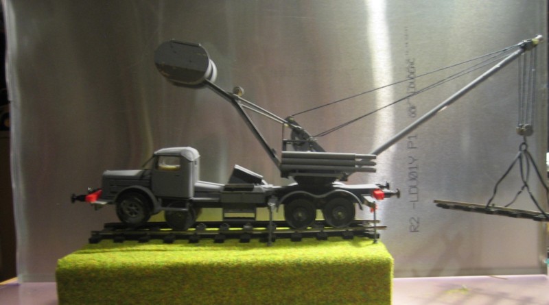Le Faun L900 était fabriqué par La Faun Company de Nuremberg, en Allemagne, spécialisée dans la construction de tracteurs et de camions lourds. Ce véhicule a d'abord été utilisé pour le transport de chars puis pour l'approvisionnement en munitions, en particulier sur les longues routes en Russie. Parce qu'ils pouvaient transporter des charges lourdes, certains de ces camions ont été utilisés comme plates-formes pour les grues lourdes, devenant le Faun LK5. La grue a été conçue par la Compagnie Demag qui a produit différents modèles, mais avec de petites différences, mais tous avaient une capacité de 7-9 tonnes, et une capacité maximale de 10 tonnes. La grue était alimentée électriquement avec l'alimentation provenant d'un générateur alimenté par le moteur diesel du camion (DEUTZ 6 cylindres F6M de 150 ch). Parce que la grue pouvait soulever des charges lourdes, il a fallu compenser le châssis Faun en ajoutant un contrepoids fixé sur une flèche. Lorsque la grue n'était été utilisée, elle était complètement démontée. Une autre particularité de ce véhicule était sa capacité à rouler sur les voies ferrées, et donc il a été utilisé par les entreprises du génie. Le changement de la route à la voie était cependant très difficile et long et il était nécessaire d'enlever toutes les roues de la route et d'adapter des roues de chemin de fer spécialement conçues sur les essieux arrière. En raison de la longueur totale du camion, un essieu supplémentaire, également équipé de roues spéciales, était installé sous la cabine du conducteur lorsque le LK5 était utilisé sur les voies de chemin de fer, et l'essieu avant conventionnel du camion restait en place mais n'était pas été utilisé. L'armée française a utilisé au moins un exemplaire de cet engin sur le réseau ferré en Algérie vers 1960. Un de ces engins FAUN est toujours en activité en Autriche mais que sur rail . |
