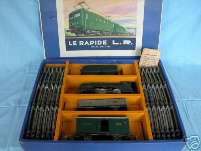 | Type: coffret référencé dans le catalogue Le Rapide 1953 sous le numéro 1024 L en très bon état comprenant 1 locomotive type vapeur 221 des années 1950, 1 tender à boggies, 2 wagons de marchandises et un lot de voies. matériaux: tôle résultats de ventes: 232 EUR |