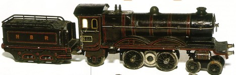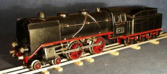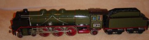 | Type: loco vapeur 220 avec tender ref E 66/12920 longueur 39 cm matériaux: tôle lithographiée Prix de vente: 905 à 1162 EUR |