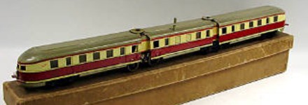 | Type: Autorail électrique à 3 éléments - bordeaux, crème & gris- fabrication de 1934 à 1938 - avec éclairage intérieur - SUPERBE MODELE DANS UN BEL ETAT DE CONSERVATION matériaux: métal Prix de vente: 1700 EUR |